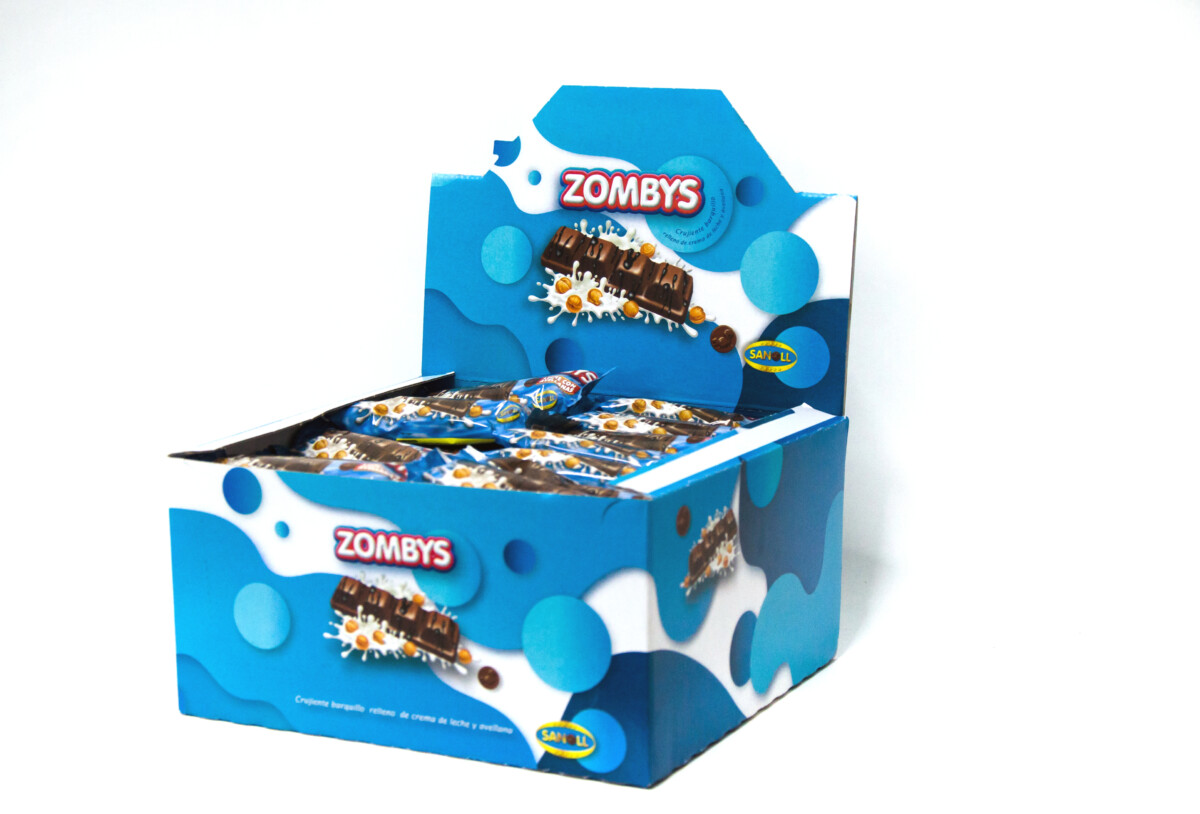 – Zombys: crujiente barquillo relleno de crema de leche y avellana