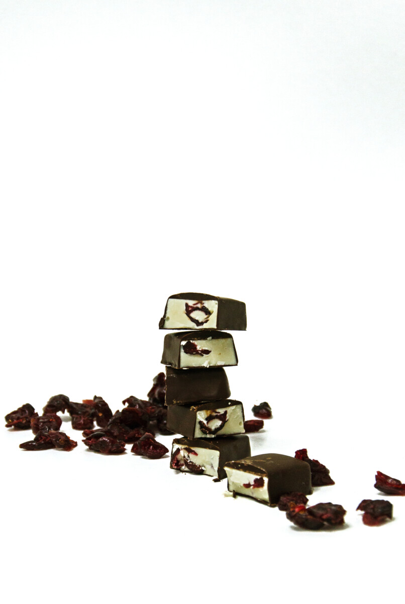– Xocofruit piña: piña confitada y cubierta de chocolate puro